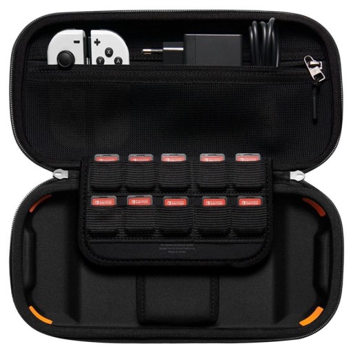 - Przestrzeń na akcesoria: Kieszenie umożliwiają przechowywanie kontrolerów Joy Con, ładowarek, kabli, zasilaczy i innych niezbędnych akcesoriów.