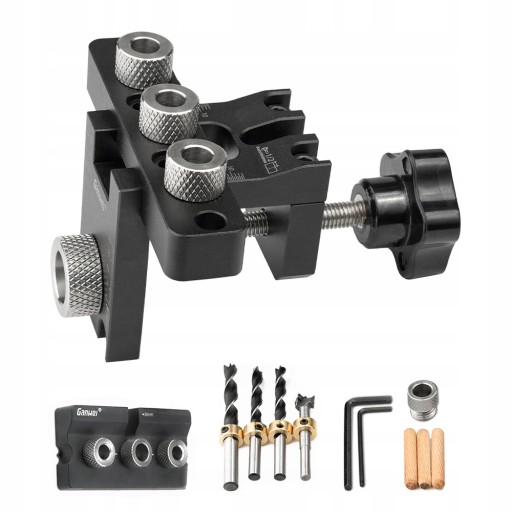 Wyposażone w wiertła 8 mm, 10 mm i 15 mm, aby spełnić Twoje wymagania dotyczące różnych średnic otworów. Lokalizator kołków może być doskonale używany z lokalizatorem dziurkowania do obróbki drewna „trzy w jednym”.