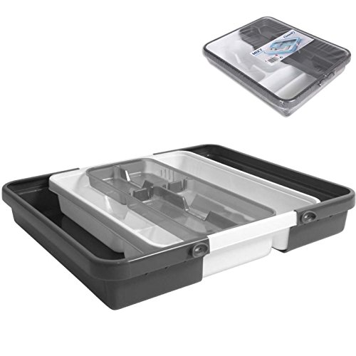 Istnieje również przesuwana taca z 2 dodatkowymi przegródkami i uchwytem na ostre noże. Tacę na sztućce można regulować w zakresie od co najmniej 31,7 do 55 cm .