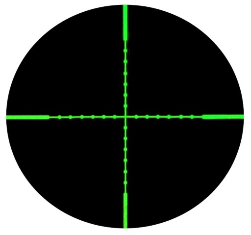 - Klasyczny krzyż celowniczy typu Mil Dot umożliwia precyzyjnie wycelowanie z korektą na przewyższanie lub boczny wiatr - na każdym powiększeniu środkowe pole siatki pozostaje jednakowo małe