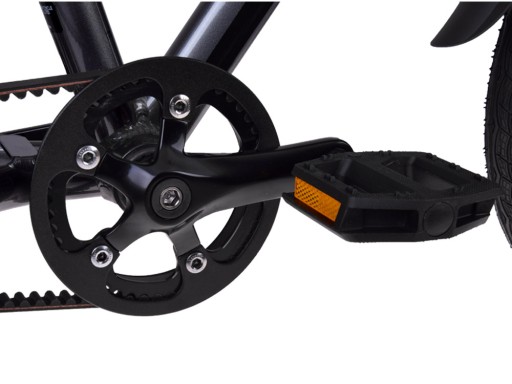 Innowacyjny napęd z paskiem zębatym: Pasek POWERGRIP HTD charakteryzuje się niską wagą, cichą pracą oraz brakiem konieczności smarowania, eliminując ryzyko zabrudzenia ubrań. Tylne koło z wolnobiegiem pozwala na swobodne pedałowanie do tyłu.