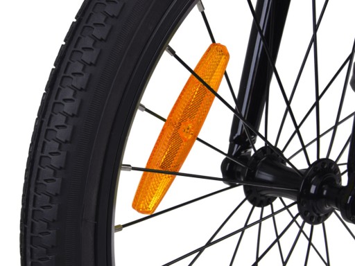 Zwiększona widoczność: Rower wyposażony jest w komplet odblasków na przód, tył oraz koła, co zapewnia widoczność i bezpieczeństwo na drodze.