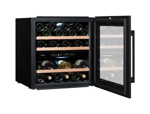 Ta elegancka winiarka idealnie pasuje do Państwa dobrze wyposażonej kuchni. Dwie strefy chłodzenia umożliwiają przechowywanie do 36 butelek wina i zapewniają komfort użytkowania. Każda komora może mieć ustawioną inną temperaturę, co pozwala na przechowywanie w tej winiarce win białych i czerwonych.