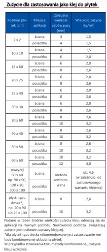 - klej na podłoże pacą 8 mm + klej na płytkę pacą 6 mm,