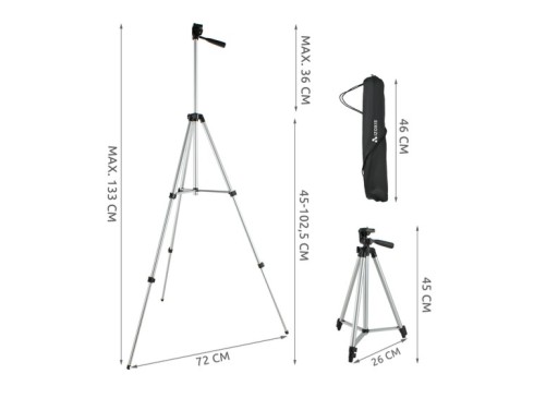 - wymiary statywu (wys min/max): 45-133cm