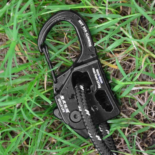 [Regulator samoblokujący]: Samoblokujący regulator ze stopu aluminium jest wyposażony w hak. Wystarczy delikatnie pociągnąć, zostanie mocno zamocowany i nacisnąć przełącznik, aby poluzować linę.