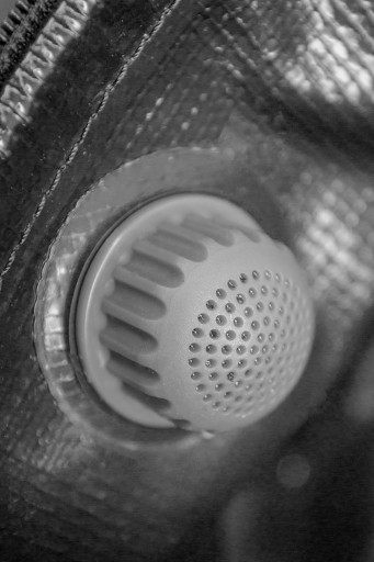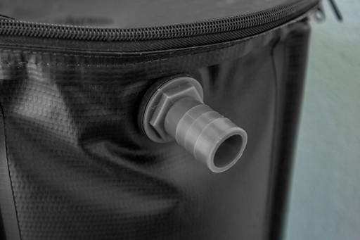 Wyposażony w sitko, które zapobiega przedostawaniu się liści i innych zanieczyszczeń do wody, oraz kran i dolny zawór 3", które umożliwiają łatwy dostęp do zgromadzonej wody.