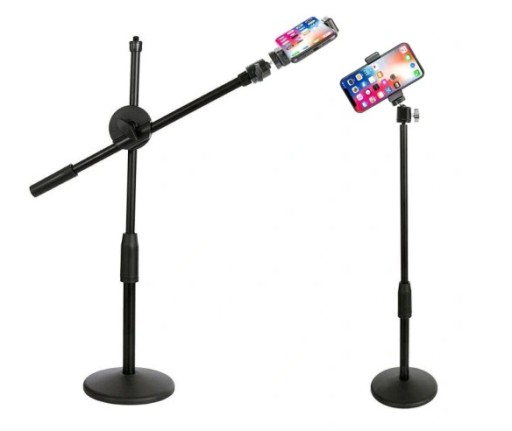 Górny gwint pionowej belki służy to mocowania oświetlenia typu lampa ring, aby zbudować w pełni funkcjonalne studio medialne.