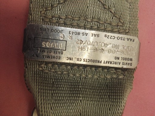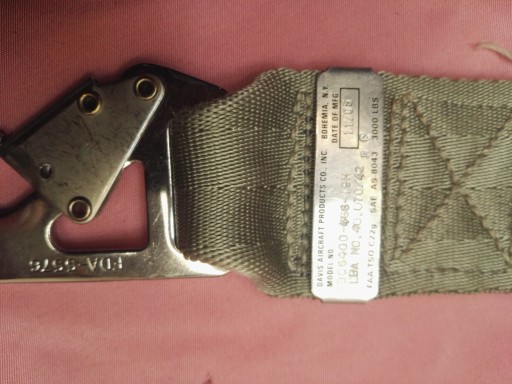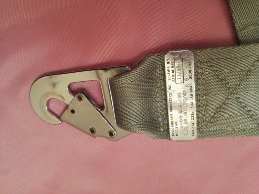 STARE PASY BEZPIECZEŃSTWA DAVIES AIRCRAFT PRODUCT Z SAMOLOTU .PASY ZNAKOWANE FDCG 400-466-I9H,ZACZEP FDA 5576 KLAMRA FD 6412M.UŻYWANE SPRAWNE STAN JAK NA ZDJĘCIACH.