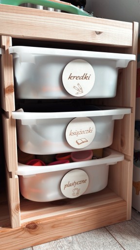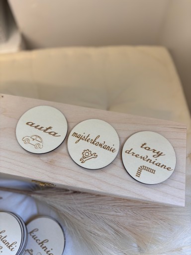 Plakietki na pudełka okrągłe Dekoracja pokoik 8 cm
