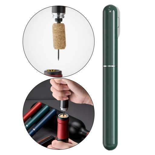 Konstrukcja w kształcie długopisu, bezpieczna i przenośna, jest najlepszym korkociągiem pneumatycznym do domu, baru, konferencji, przyjęcia lub ceremonii ślubnej na oficjalne i nieformalne okazje.