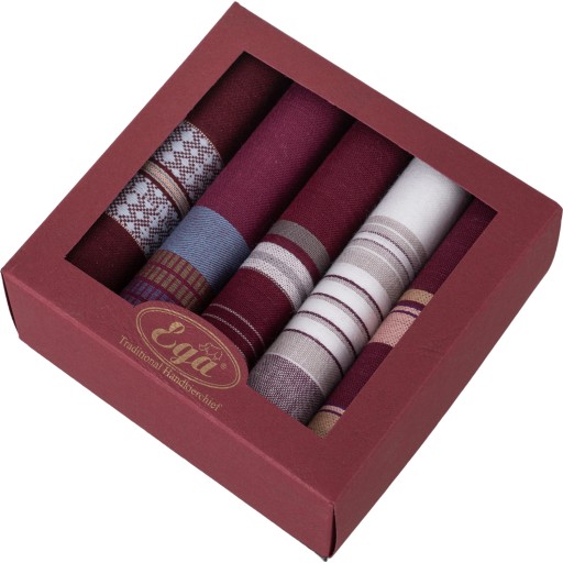 НАБОР 5x ЭЛЕГАНТНЫХ НОСАЛЬНЫХ РУЧНЫХ ХЛОПКОВЫХ КВАДРАТНЫХ КВАДРАТОВ В КОРОБКЕ