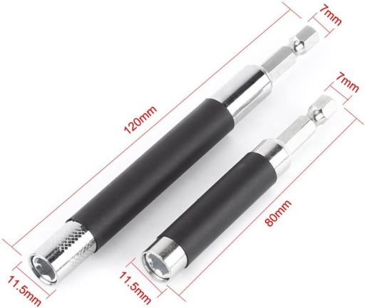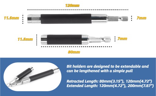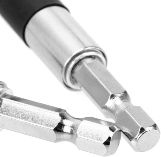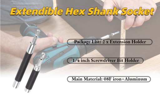 About this item Hard metal holder, the heavy-duty construction allows for long service life Bit holders are designed to be extendable and can be lengthened with a simple pull 1/4inch quick hex shank and 1/4inch hex socket fit most electric drivers, hand-held drivers and bits The small size allows you to bring your bit extension anywhere to get any job done and can fit into many tool bag Very helpful to remove or tighten a large number of screws after you've started or loosened them