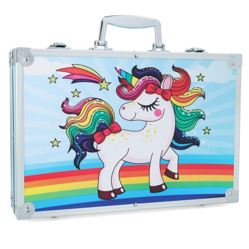 Cały zestaw został zamknięty i wygodnej do przenoszenia i transportu rozkładanej walizce, dzięki czemu można wziąć go ze sobą wszędzie. Każdy przybór ma w niej swoje miejsce, co zapewnia porządek i uczy dzieci umiejętności organizacyjnych.