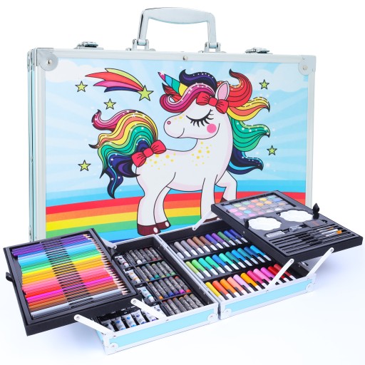 Zestaw składa się z różnych przyborów i mediów artystycznych, dzięki czemu Twoje dziecko nauczy się tworzyć rysunki i obrazki w różnych stylach i technikach. Gwarantuje on wiele godzin świetnej i twórczej zabawy dla małych artystów.