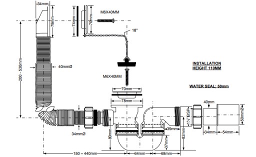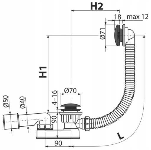 - Syfon do wanny z łatwością zamyka oraz otwiera odpływ wody.