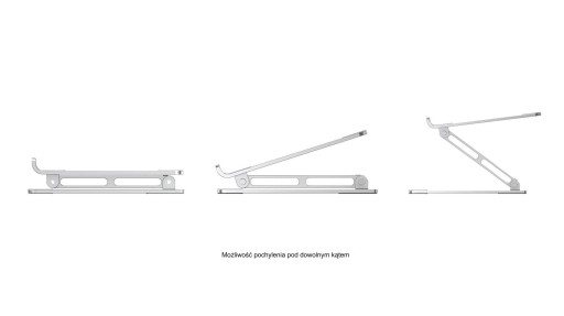 Podstawka pozwala na uniesienie urządzenia pod różnym kątem, co przekłada się na poprawę ergonomii oraz utrzymanie zdrowej pozycji podczas pracy na laptopie.
