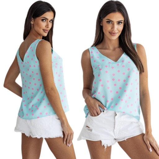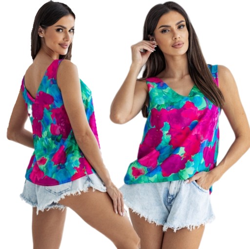 Ta damska bluzka na ramiączka z nadrukiem to idealna propozycja dla każdej kobiety, która chce wyróżnić się ze swoim stylem.