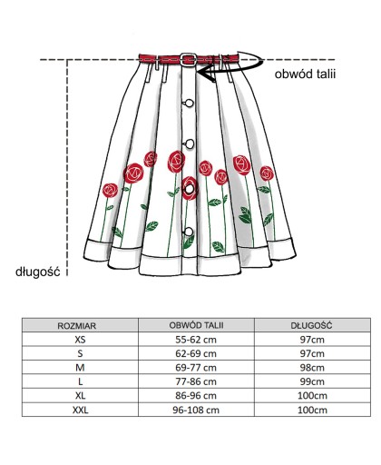 Proszę o wiadomość po zakupie, w jakim kolorze mamy uszyć spódnice oraz w jakim rozmiarze.