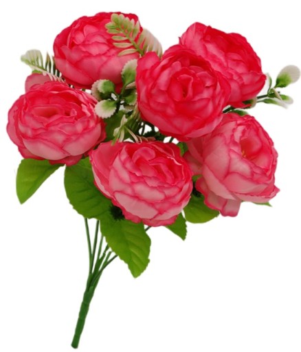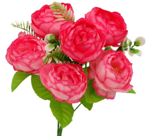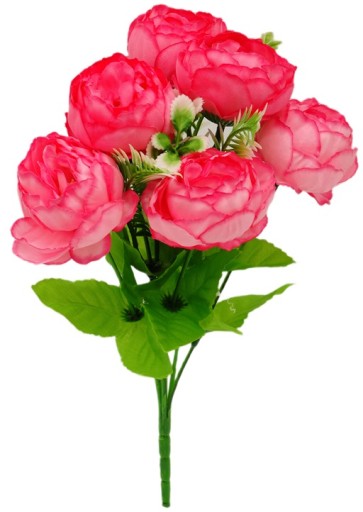 Przedstawiamy Państwu przepiękny bukiet sztucznych różowych peonii z 6 główkami, wzbogacony o dodatki liści.