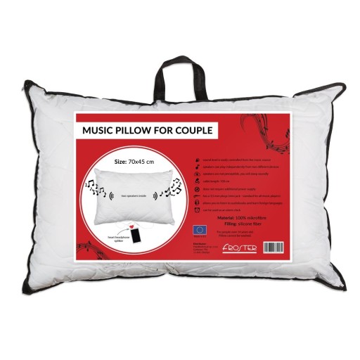- W poduszce znajdują się dwa głośniki. Do zestawu dołączono przejściówkę w kształcie serca, która pozwala na słuchanie muzyki z jednego źródła. Głośniki mogą działać też niezależnie od siebie. Dźwięki wydobywające się z głośnika są słyszalne tylko dla osoby przytulonej do poduszki. Głośność dźwięku jest łatwo sterowana ze źródła muzyki. Głośnik wewnątrz poduszki jest niewuczuwalny w trakcie snu. Nie wymaga dodatkowego zasilania, czerpie energię z odtwarzacza. Posiada wtyk 3,5 mm (mały jack