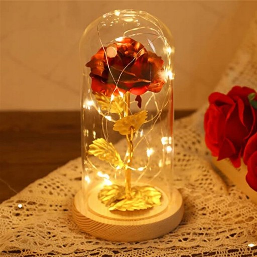 Wieczna róża, to idealny prezent od serca, który wyraża więcej niż 1000 słów czy innych drobiazgów. Panowie, ten prezent wywoła wielki uśmiech na twarzach waszych wybranek. Wieczna róża w szkle otoczona jest światełkami LED, które ją podświetlają nadając efekt WOW. Pięknie się prezentuje na stoliku nocnym, komodzie, stole, gdzie tylko stanie, nadając WYJĄTKOWEJ MAGII I UROKU.