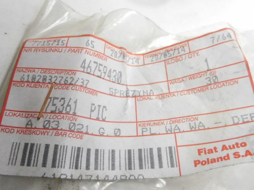 FIAT OE 46759430 Пружина педали сцепления Fiat Punto DOBLO