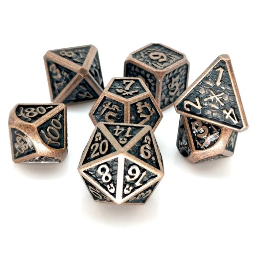Zestaw siedmiu metalowych kości do gier fabularnych