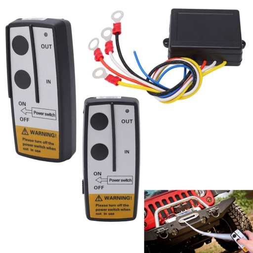 Kompletny zestaw: uniwersalny bezprzewodowy zestaw zdalnego sterowania wciągarką zawiera 2szt bezprzewodowego pilota wciągarki, 1szt bezprzewodowego odbiornika wciągarki, przyjmuje wbudowaną konstrukcję anteny, wygodną w obsłudze.