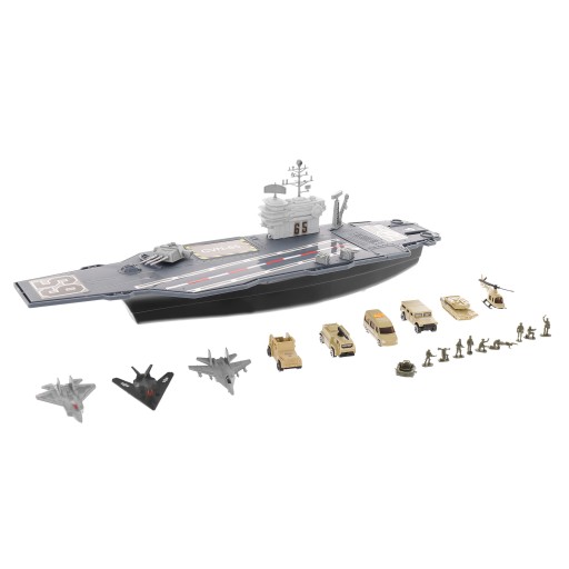 Ten wyjątkowy zestaw wojskowy z lotniskowcem to marzenie niejednego młodego fana marynarki wojennej oraz wszelkich zabawek militarnych. W jego skład wchodzą wszelkiego rodzaju samoloty, ogromna łódź, żołnierzyki, czołg i inne pojazdy. Wszystkie z maszyn posiadają ciekawe kolory i szczegóły, które nadają całemu zestawowi realizmu. Wszystkie elementy są lekkie i łatwe w trzymaniu, dzięki czemu sprawdzą się także w przypadku najmłodszych.