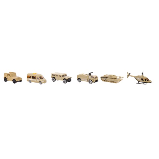 Zestaw maszyn wojskowych wraz z lotniskowcem to nie lada gratka, dla każdego małego fana wszelkiego rodzaju militariów. W jego skład wchodzą aż 3 odrzutowce, lotniskowiec, 4 pojazdy, helikopter, a także 10 figurek z żołnierzykami. Pozwoli to na kreatywną zabawę w każdym miejscu.