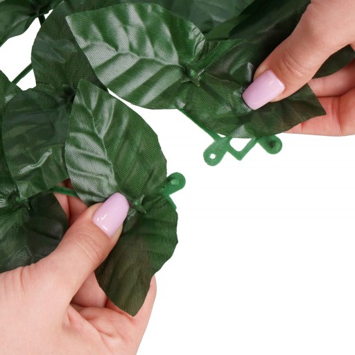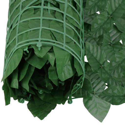 Osłona balkonowa wykonana jest z mocnego, wytrzymałego tworzywa sztucznego. Liście są gęsto rozmieszczone, co gwarantuje wysokie zacienienie, przedłużoną żywotność oraz odporność na warunki atmosferyczne, w tym promienie słoneczne.