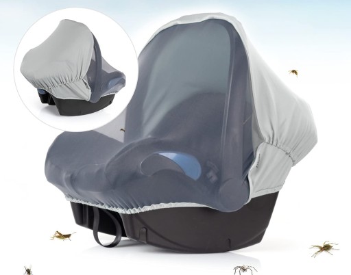 Osłona na owady: dach przeciwsłoneczny i osłona w jednym – idealne akcesorium do fotelika dla niemowląt na lato. Łatwy montaż na prawie każdej grupie 0 siedzeniach samochodowych (np. Maxicosi, Hauck, Kiddy, Romer itp.)