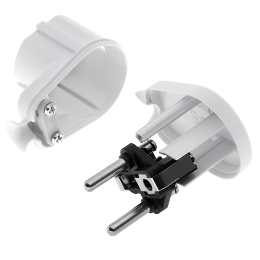 ➡️ Montaż przewodów za pomocą śrub, wtyczka posiada wewnętrzną blokadę zapobiegającą wyrwaniu przewodu