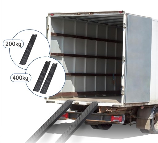 Każda rampa może być obciążona do 200 kg, a całkowita nośność obu ramp wynosi 400 kg.