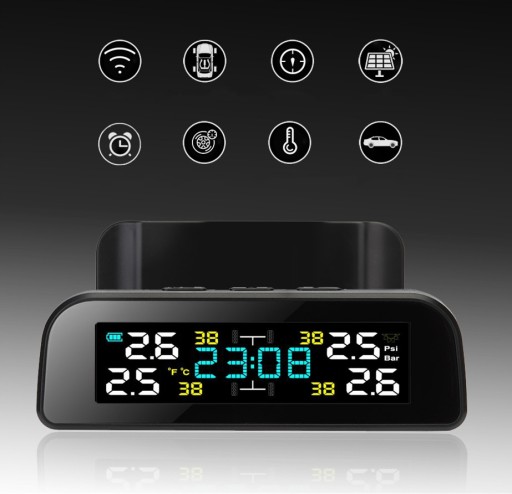 Ten monitor ciśnienia w oponach może wyświetlać cztery ciśnienia w oponach w czasie rzeczywistym, pomagać użytkownikom monitorować stan opon na czas, zwiększać bezpieczeństwo jazdy i ma funkcję zegara, która jest odpowiednia dla różnych modeli.