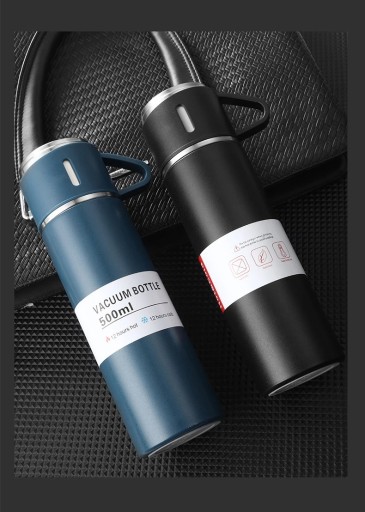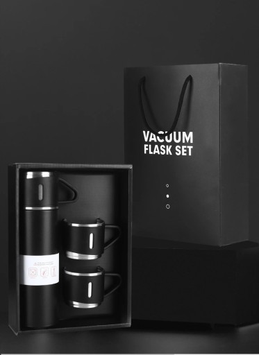 TERMOS Z 3 KUBKAMI 500ML ELEGANCKI PREZENT DŁUGO TRZYMA KUBEK TERMICZNY