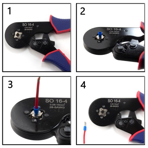- DUŻY ZAKRES PRACY – zaciskarka do tulejek posiada duży zakres zaciskania. Przeznaczona jest do zaciskania tulejek izolowanych i nieizolowanych o rozmiarach od 0,08 do 16 mm2.