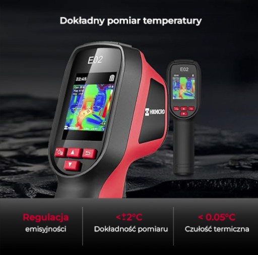 Kamera termowizyjna cechuje się wysoką dokładnością pomiaru temperatury, wynoszącą ±2°C, co zapewnia precyzyjne wyniki i minimalizuje ryzyko błędów. Dodatkowo, dzięki wysokiej czułości termalnej (NETD < 50 mK), kamera jest w stanie wykrywać nawet najmniejsze różnice temperatur, co pozwala na szczegółową analizę i identyfikację niewielkich anomalii termicznych.