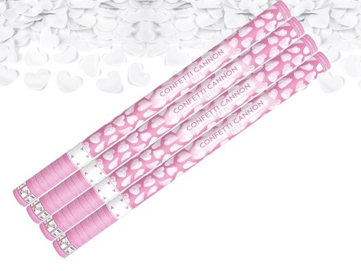 Tuba strzelająca - białe serca - 80 cm - 4 szt.