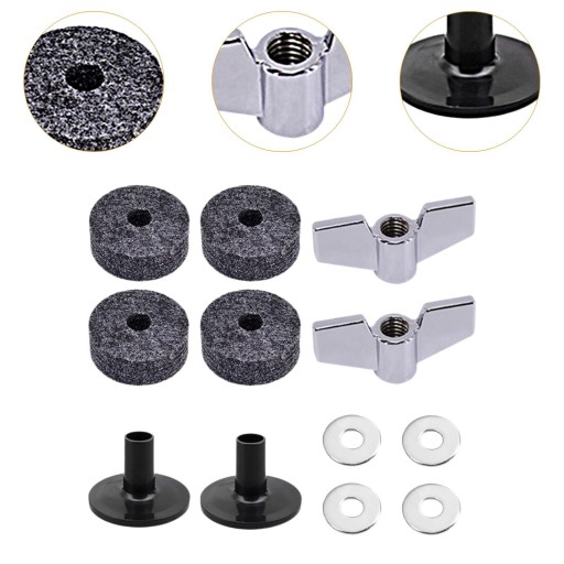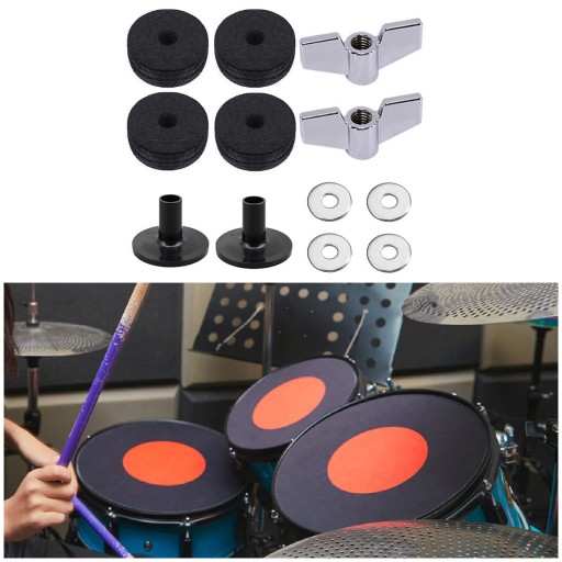 [Chroni bęben]: Filcowe podkładki pod talerze mogą zapobiegać kolizjom talerzy z metalem, chronią talerze, a także mogą poprawić jakość dźwięku i wydajność talerzy.