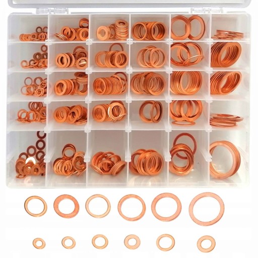 МЕДНЫЕ ШАЙБЫ УПЛОТНИТЕЛЬНЫЕ 30x РАЗНЫХ РАЗМЕРОВ МЕГА НАБОР 580 ШТ.