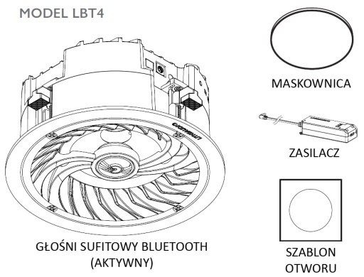 - 4” Głośnik sufitowy z bluetooth 5.0 25W 8 Ohm IP44
