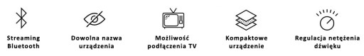 Parowanie głośnika z dowolnym urządzeniem zewnętrznym(np. telefon, tablet, laptop) jest również bardzo proste i intuicyjne, wymaga jedynie uaktywnienia funkcji bluetooth - nie wymaga obsługi żadnej zewnętrznej aplikacji. Wszystkie w/w funkcję z dokładnym opisem znajdują się w dołączonej do zestawu instrukcji. Dzięki głośnikowi możemy bezpośrednio odtwarzać dźwięk z najpopularniejszych serwisów jak: Spotify, Deezer, Tune In, Youtube oraz własnej biblioteki plików muzycznych, ale nie tylko. Istnieje również możliwość pobrania bezpłatnej aplikacji Lithe Audio BT dzięki, której za pomocą smartphone w łatwy sposób można zmienić nazwę głośnika oraz nadać indywidualny kod PIN.