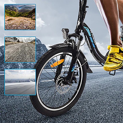 Jako składany e-rower z ramą aluminiową, która jest naprawiana, mocna i lekka.