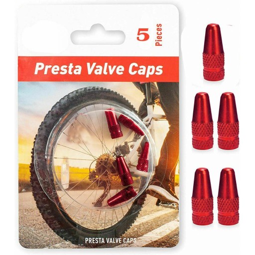 5 X Osłona Przeciwpyłowa Bike Bike PRESTA Felgi Koła Zaślepka Zaworu Powietrza Czerwona