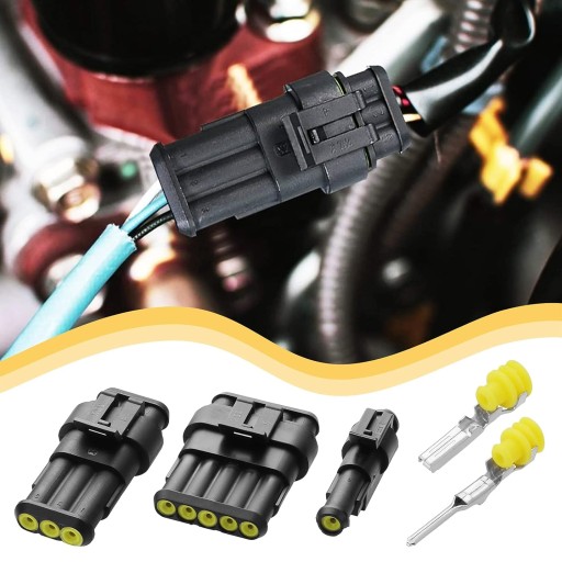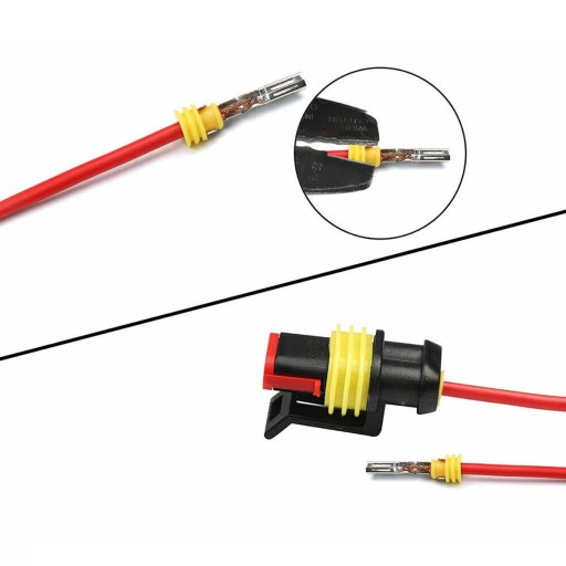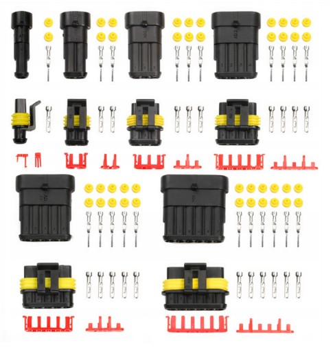 - 2Pin (6 zestawów) 6 x męskie złącze obudowy, 6 x żeńskie złącze obudowy, 12 x męski pin, 12 x trzpień żeński, 24 x silikonowa wodoodporna wtyczka