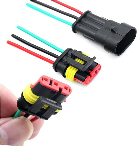 - 3Pin (6 zestawów) 6 x męskie złącze obudowy, 6 x żeńskie złącze obudowy, 18 x męski pin, 18 x trzpień żeński, 36 x silikonowa wodoodporna wtyczka