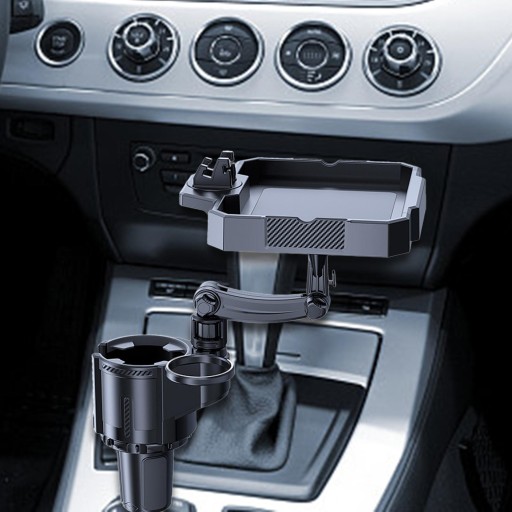[Rozciągliwa taca obiadowa]: Taca przedłużacza uchwytu na kubek samochodowy jest rozciągliwa. Po poszerzeniu i powiększeniu wygodniej jest umieścić różnorodne przedmioty i powiększyć przestrzeń w samochodzie.