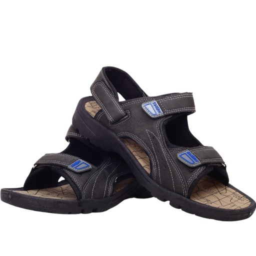 Męskie sandały zapinane na rzep w kolorze czarnym, szarym lub brązowym na płaskim spodzie. Idealnie sprawdzą się jako obuwie na co dzień w letnie, upalne dni. Prosty fason dopasuje się tęgości stopy . Lekka podeszwa skutkuje dłuższą wytrzymałością obuwia.